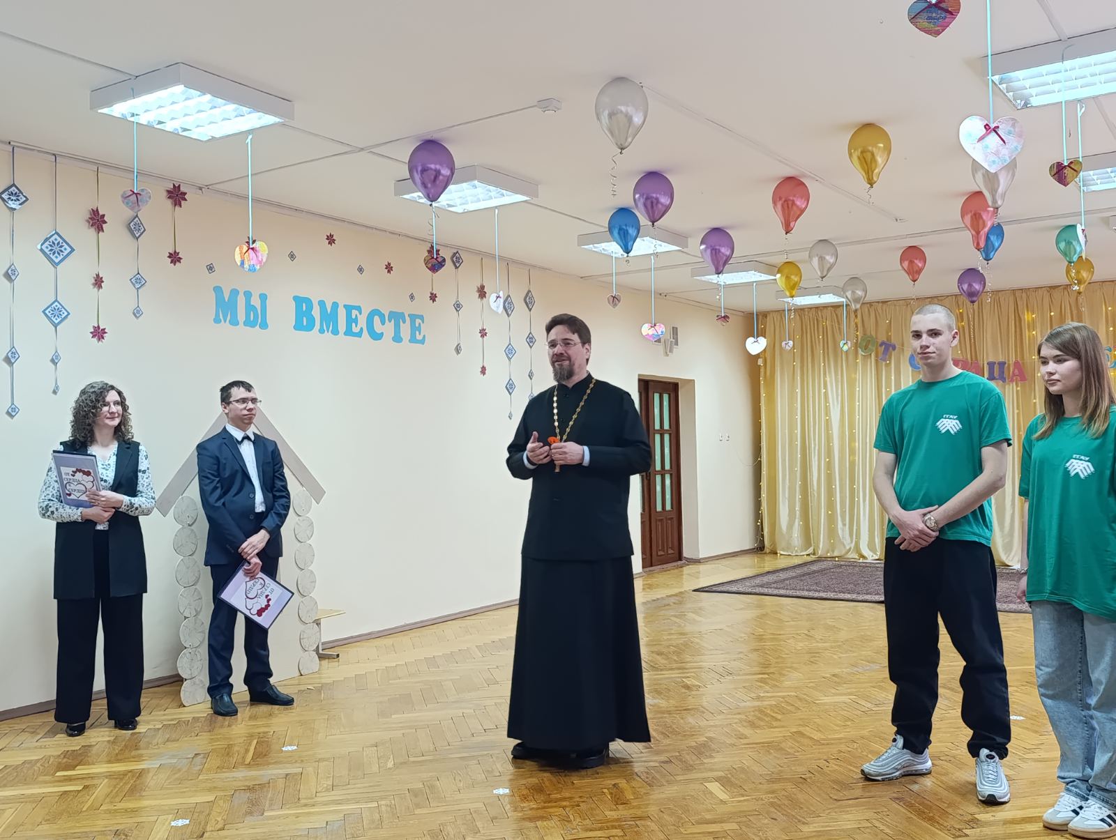 В корпусе №2 по проспекту Я. Купалы, 48 состоялось праздничное мероприятие "От сердца к сердцу" с участием ключаря прихода церкви Собора всех Белорусских святых иерея Евгения Коваля, студентов-волонтеров и сотрудников отдела по идеологической и воспитательной работе УО "Гродненский государственный аграрный университет", педагогов и воспитанников ГУО "Детский сад №69 г. Гродно".